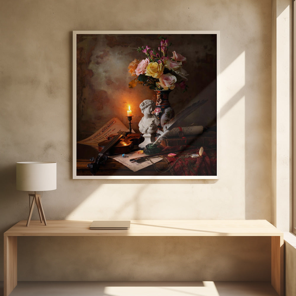 Still life with bust and flowers