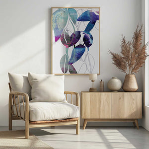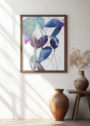 Botanical Leaf Print Art In Navy Blue 2