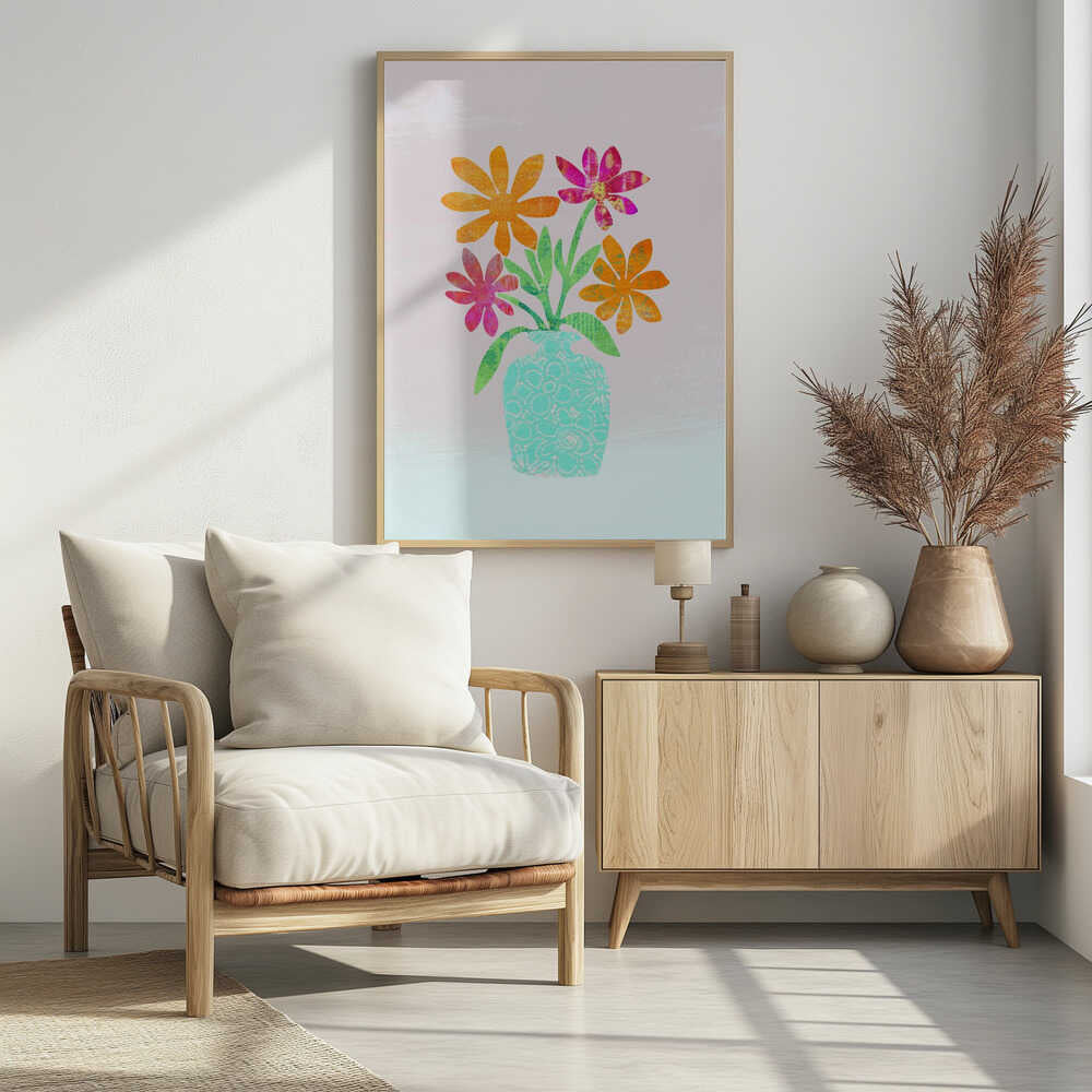 Vibrant Floral in a Turquoise Vase by Andrea Haase
