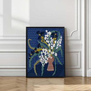 Floral Contemporary Still Life Dark Blue