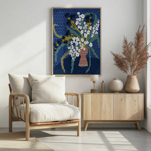 Floral Contemporary Still Life Dark Blue by Annick