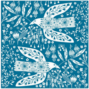 Peace Doves And Flowers White On Teal Green by Nic Squirrell