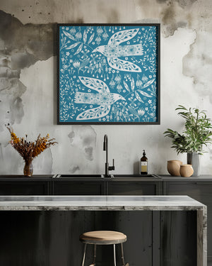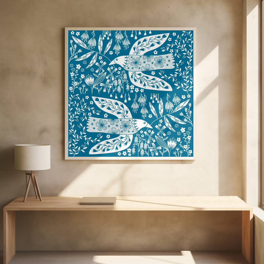 Peace Doves And Flowers White On Teal Green