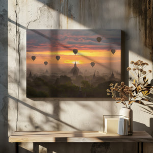Bagan, balloons flying over ancient temples by Sarawut Intarob