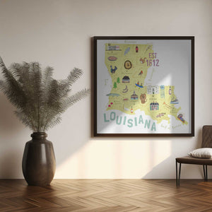 Beautifully Illustrated Map of Louisiana by Artist Carla Daly