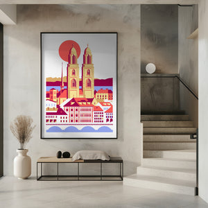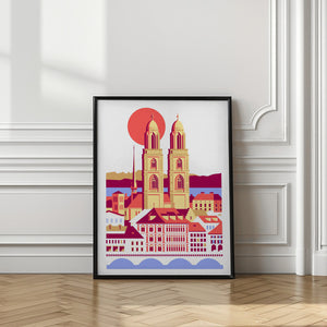 City Of Zurich Switzerland Swiss Summer Mountains City Illustration Vintage Poster