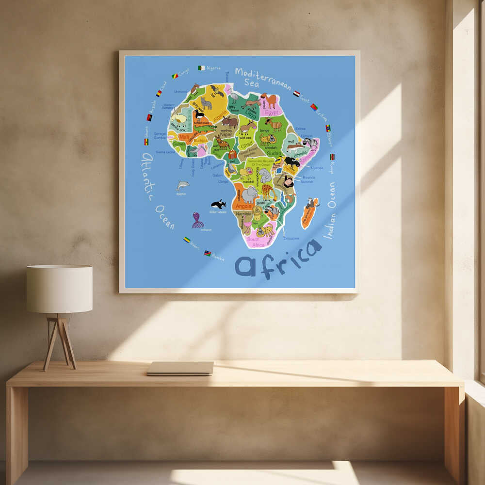 Illustrated Map of Africa with Countries and Cute Animals by Carla Daly