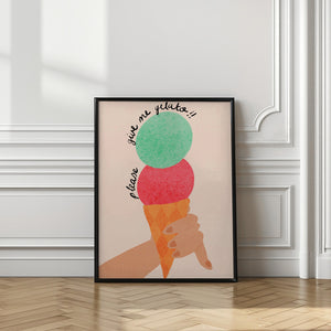 Please Give Me Gelato Ice Cream Typography Poster Strawberry and Mint by Dirkie Nell