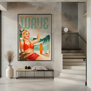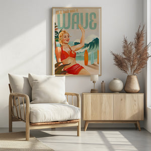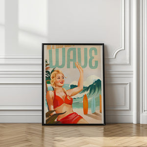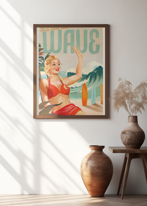 Surfing Pinup Girl On Beach In Bikini by The Whiskey Ginger