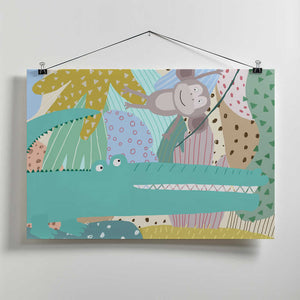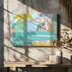 Funny Crocodile with Cheeky Monkey in Jungle by Carla Daly