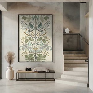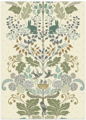 Garden Tales damask XXL panel green shades pattern by Annick