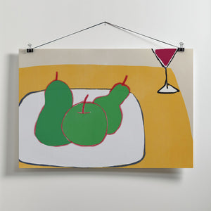 Green pears on the table by Little Dean