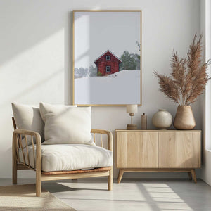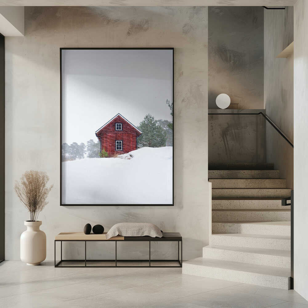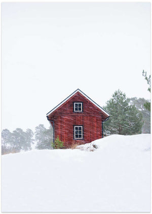 Old red house during snowstorm by Christian Lindsten